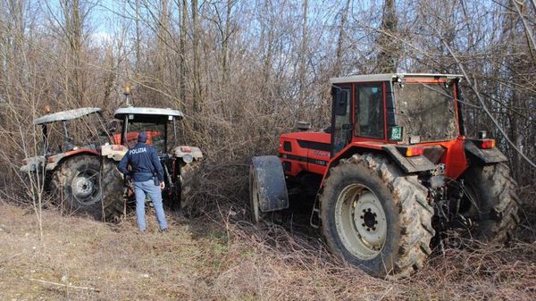 Hanno rubato tre trattori e una gru ma sono finiti in un fossato e hanno abbandonato i mezzi per scappare dalla polizia. Una fuga rocambolesca, con gli agenti alle calcagna.