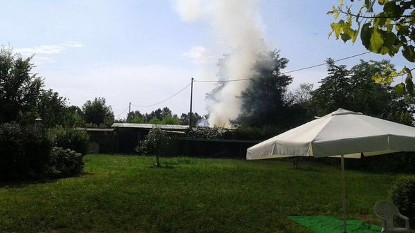 Una persona stava passando di lì e ha visto il fuoco e la porta del capanno aperta. È così che ha visto un uomo a terra, in stato di choc e con le braccia ustionate.