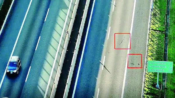 AUTOSTRADA. Volano a lato, a 120 metri di altezza. Dati inviati in tempo reale al Centro di controllo di Fara. «Così si ottimizza la gestione degli interventi».