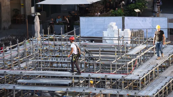 «La piramide verde ha danneggiato Piazza Vecchia». Il Comune replica: «I danni saranno riparati» - Foto e video