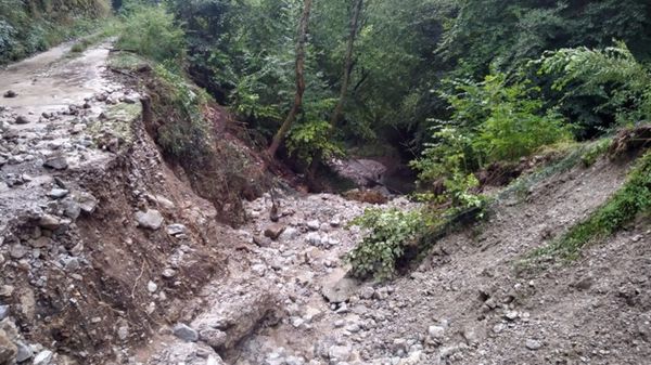 Detriti e sassi sulla carreggiata a Oltre Il Colle, l’azienda agricola Tiraboschi non raggiungibile. In Val Carnera il torrente che scende dal Menna è straripato a monte. Bloccata la via di accesso.