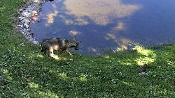 Un giovane esemplare di canide ripreso due volte nei pressi di una pozza d’acqua. La Regione: potenzieremo le difese per gli alpeggiatori.