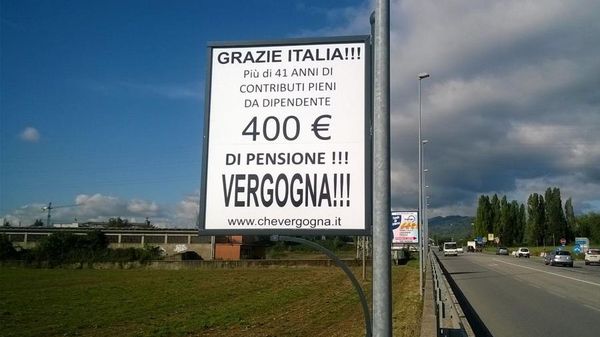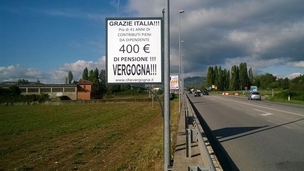 Un cartello lungo la Briantea e un sito internet: la singolare denuncia contro i calcoli dell’Inps.