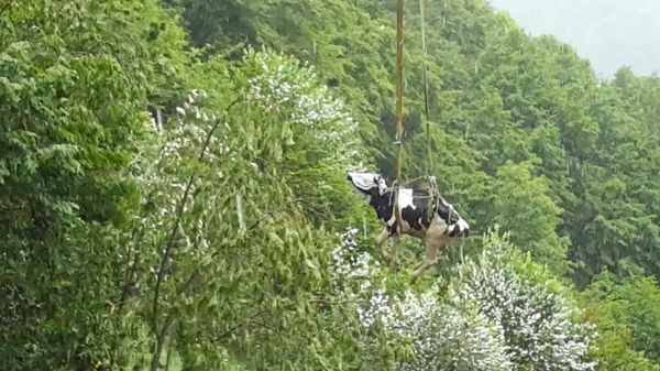 Dopo il cane che ha rischiato di annegare (anche il suo padrone è stato salvato dall’Adda) soccorritori mobilitati in Val Serina per una mucca precipitata in un dirupo.