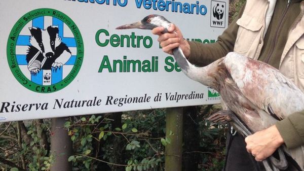 Un raro esemplare di gru è stato curato all’oasi del WWF di Valpredina. Era stato ferito con un’arma da fuoco.