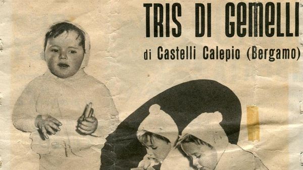 Tutine bianche con cappuccio e pon-pon, guanciotte da pizzicare e quel musetto identico ripetuto per tre. Sono i volti della campagna pubblicitaria Plasmon Anni ’50: i tre gemelli Franco, Adriano e Ferruccio Belotti, di Castelli Calepio.