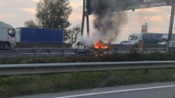 Un furgone ha preso fuoco sull’autostrada A4 nel tratto tra Palazzolo e Grumello del Monte.