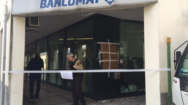 Distrutto col gas il bancomat in via Morenghi. Malviventi messi in fuga dalle guardie giurate. In pezzi vetrata e soletta, danni anche ai vicini.