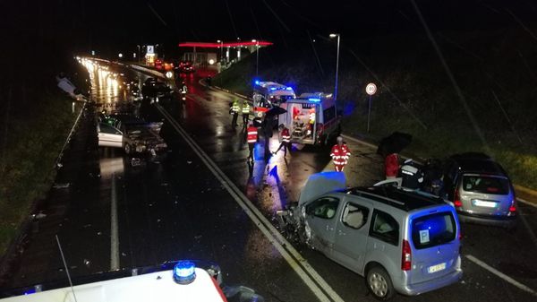 Schianto tra cinque auto: nove feriti Traffico in tilt: chiusa per ore la Statale 42