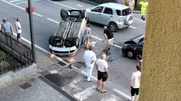 L’auto dell’anziana di 92 anni è stata urtata e si è ribaltata: è stata aiutata da alcuni passanti ad uscire. Spaventata, ne è uscita illesa.