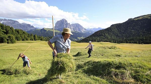 Dal taglio del fieno al giaciglio in quota. Falciare il fieno (nel vero senso del termine), creare un letto di fieno dove riposare e rigenerarsi dopo la fatica e godersi un pic nic in alta quota con i sapori autentici del territorio.