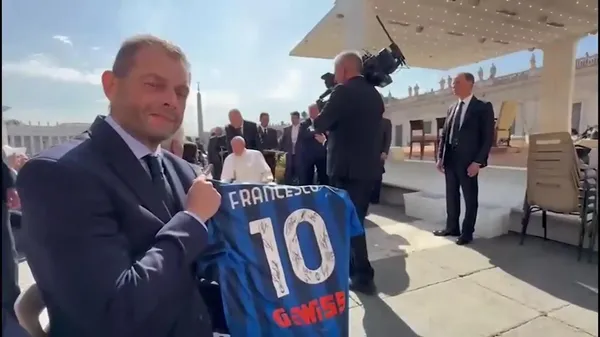 Cronaca / Bergamo Città Il dono speciale al Papa: il patron Gewiss consegna la maglia nerazzurra con la scritta «Francesco» 1 anno fa