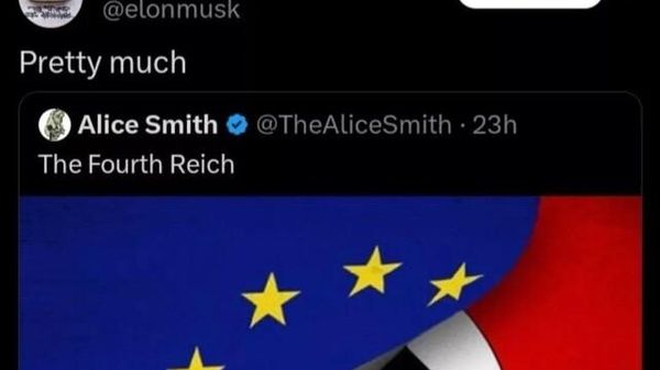 NEW YORK - L'Ue è il quarto Reich: Elon Musk alza i toni e torna ad attaccare Bruxelles e il Vecchio Continente rispondendo "praticamente" a un post che recita: "Quarto Reich". Sotto la scritta una svastica che spunta sotto la …
