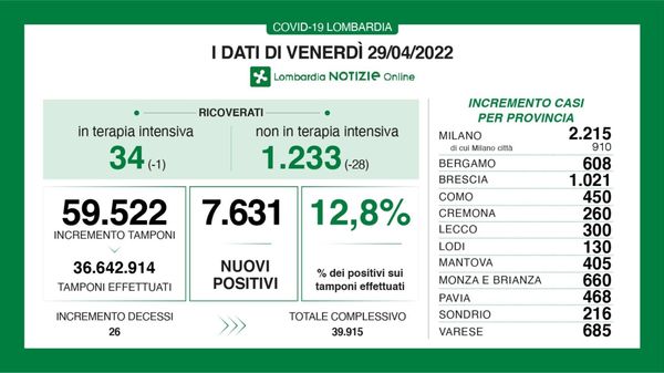 Coronavirus I dati di venerdì 22 aprile in Lombardia.