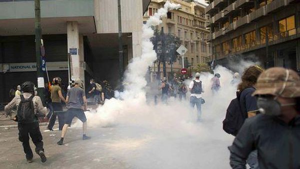 Grecia/ Atene:decine di feriti e arresti,inferno di lacrimogeni Incendio in edificio ministero delle Finanze