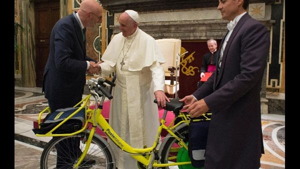 Papa:riceve in dono bicicletta elettrica