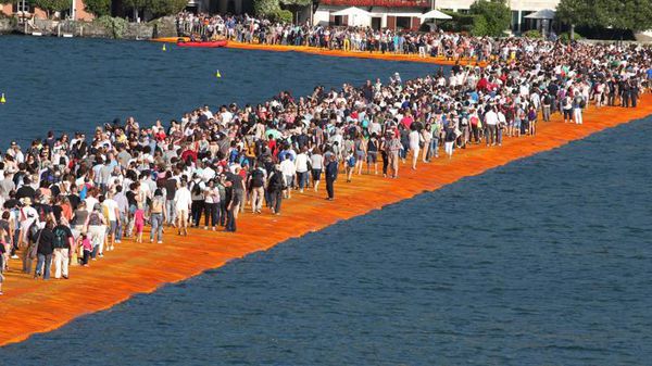 Il sole splende sulla passerella e le code sono iniziate già dalle prime ore della mattinata. Tantissima gente che deve avere solo pazienza e voglia di questa passeggiata sull’opera di Christo. Lo stesso artista lo ha ribadito.
