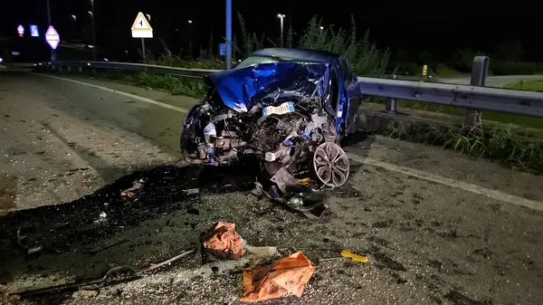 L’INCIDENTE. Domenica sera 14 settembre il 24enne è finito contro la cuspide all’uscita dell’Iper. Molto violento l’impatto: le sue condizioni restano gravi,