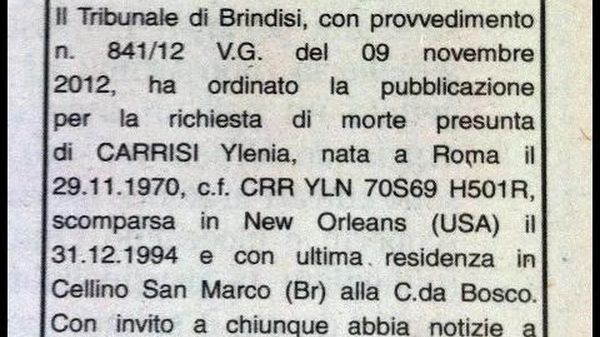 Non si hanno piu' notizie ragazza dal 1994, era a New Orleans