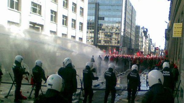 Vertice Ue/ Tafferugli a Bruxelles in manifestazione di protesta Polizia risponde con idranti a lancio nutrito di sampietrini