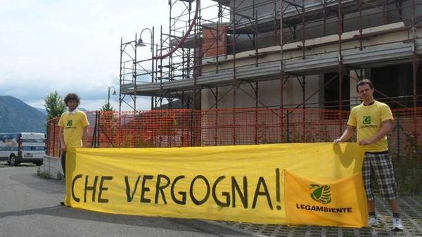 La Goletta dei Laghi denuncia il consumo di suolo sulla costa del lago d'Iseo. Consegnata a Paratico, sulla riva bresciana, la bandiera nera. La provocazione degli ambientalisti in una piccola area verde. «Il lago d'Iseo perde in competitività turistica se non mette un freno alla cementificazione».