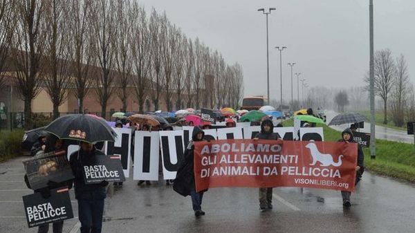 Un'ottantina di persone ha sfilato nella mattinata ad Antegnate, contro l'allevamento di visoni. Gli animalisti - di Animal Amnesty, Lac, Empa, Oipa e Lav - hanno protestato con cartelli e striscioni per contestare l'allevamento e la morte dei visoni.