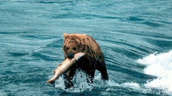 L'orso chiama gli amici: venite, qui c'è il salmone! Scatto del fotografo Gorshokov nella foresta del Kamchtcka