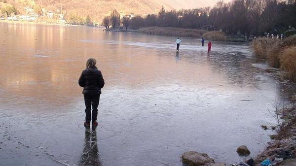 Con i pattini sul lago d'Endine Bello, pericoloso e vietato
