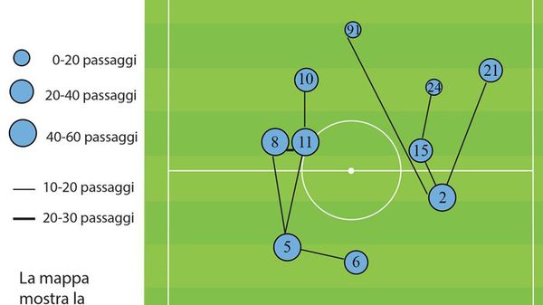 La partita di lunedì sera contro la Spal ha decretato la seconda sconfitta stagionale, peraltro consecutiva dell’Atalanta. Con l’aiuto di alcuni dati statistici e l’utilizzo delle due pass-map (mappe che riproducono le traiettorie medie dei passaggi di un’intera partita) riprodotte qui a fianco, cercheremo di analizzare dal punto di vista quantitativo e posizionale la partita degli orobici.
