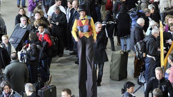 Germania/ Clown ad aeroporto Francoforte per risollevare morale Ancora ritardi e voli cancellati a causa della neve