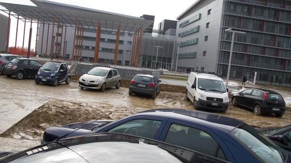 La neve e il cattivo tempo hanno reso impraticabili alcuni percorsi pedonali al nuovo ospedale. Una situazione peggiorata dal fatto che i lavori sulla struttura stanno continuando, con il fango che in alcuni casi rende difficile raggiungere alcune zone dell'ospedale.