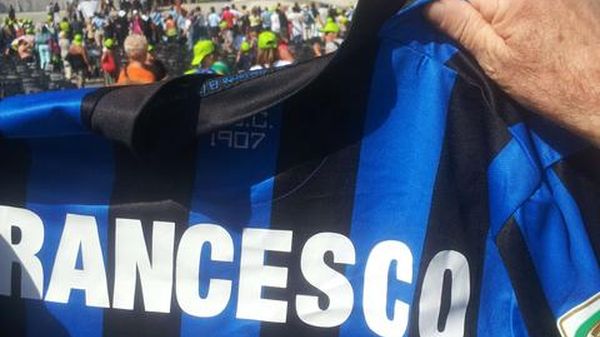 Ha afferrato al volo la maglia dell'Atalanta, l'ha guardata e ha risposto con un sorriso. Per qualche istante anche Papa Francesco si è trasformato in tifoso nerazzurro. È accaduto mercoledì mattina a Roma al termine dell'udienza settimanale.