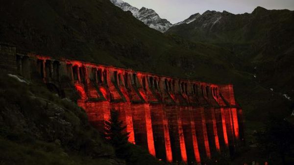 La diga del Gleno illuminata per la “Giornata dell'energia”. L'evento di Enel Green Power in collaborazione con i volontari dell'Anpas Croce Blu di Gromo ha richiamato centinaia di villeggianti e turisti. Prima di una luce rossa, quasi a voler ricordare …