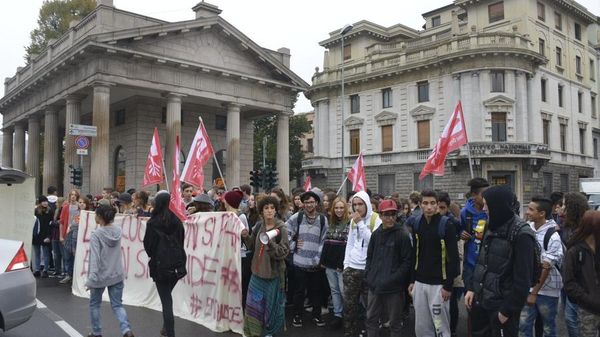 Gli studenti protestano contro piano scuola Renzi-Giannini, diritto allo studio e costi della scuola, dote scuola, privatizzazione dell’istruzione, Jobs act e precarietà, più partecipazione degli nel dibattito della scuola.