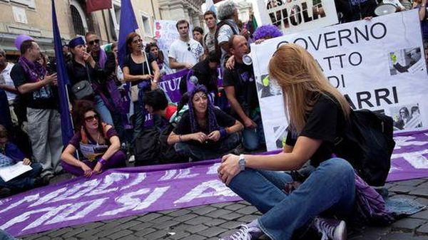 Ruby/ Popolo viola in piazza Fontana: Berlusconi si dimetta Pentole e coperchi a Milano traslocano dal Tribunale, c'è già Pdl