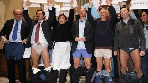 Roma, presidenti municipi in mutande protestano contro Alemanno Chiedono il via libera al bilancio: "Mancano i soldi per tutto"