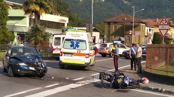 L’incidente a Prevalle nel Bresciano: scontro tra un’auto ferma in coda e una motocicletta in fase di sorpasso.