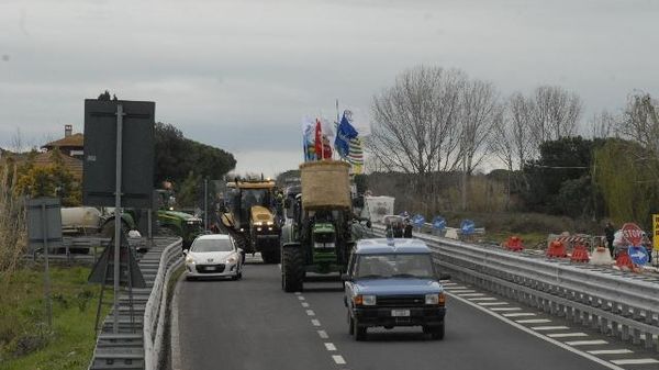 Corteo trattori sull'Aurelia. L'alluvione il 12 novembre scorso