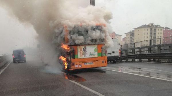 L'incendio del motore di un pullman dell'Atb ha mandato in tilt la circolazione proprio nel momento clou del traffico. È accaduto martedì mattina all'altezza del viadotto di Boccaleone: il bus era fuori servizio e stava rientrando nella sede Atb di via Gleno.