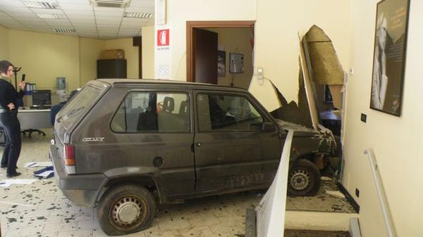 Pauroso incidente ad Albino, in viale della Libertà: una Fiat Panda 750 si è «infilata» in un ufficio dell'agenzia per il lavoro Manpower Spa abbattendo la porta a vetri dell'ingresso. L'auto fuori controllo ha finito la sua corsa contro un muro interno.