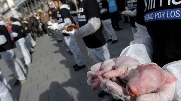 Spagna/ Animalisti manifestano a Madrid con animali morti In coincidenza con Giornata internazionale dei diritti umani