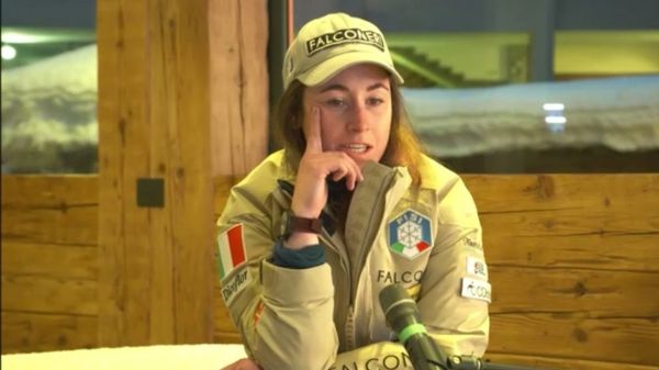 La bergamasca, out per l’infortunio al piatto tibiale del ginocchio destro, è arrivata a Cortina per tifare le sue compagne di squadra in vista del gigante femminile.