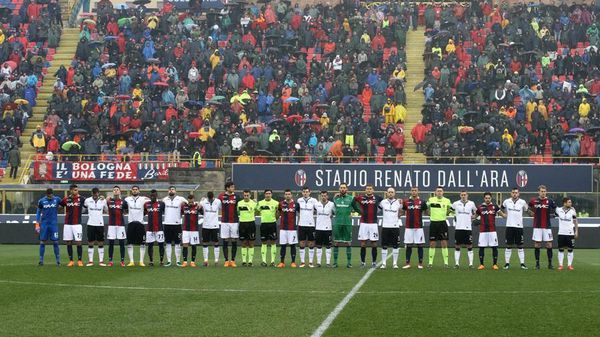 Anche a Bologna il raccoglimento per il capitano bergamasco, giocatori abbracciati e commossi.