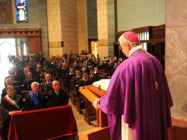 «Riuniti in questo tempio votivo per la pace, vi ringrazio di cuore per il vostro servizio quotidiano al territorio bergamasco. Anche se spesso il vostro servizio vi porta a contatto con il male, vi auguro di non cadere mai in una visione dominata dal pessimismo, ma di lasciare irrompere la luce portata dal mistero pasquale».