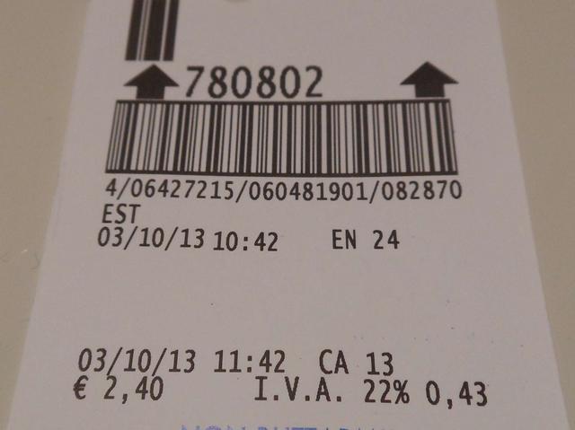 Con una tariffazione oraria che può così raggiungere anche i 2,40 €. Ed infatti è ciò che mi è successo il giorno 3/10/2013: per esattamente un'ora di sosta sono stato obbligato a pagarne due. E la foto lo attesta molto chiaramente.