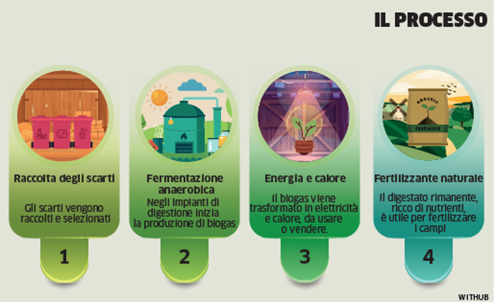 Nelle scorse edizioni, abbiamo scoperto come il cosiddetto «scarto di produzione» - nella filiera lattiero-casearia - sia in realtà una preziosa risorsa. Nella corsa verso un settore più sostenibile, non sono solo i sottoprodotti come panna e siero ad essere riutilizzati. A questi si aggiungono i reflui zootecnici e altri residui di lavorazione: prodotti che non sono più solo rifiuti da smaltire, ma ingredienti per la produzione di energia e fertilizzanti naturali. Il futuro dell’energia in stalla e in caseificio parla sempre più la lingua dell’economia circolare. Il biogas è una delle soluzioni più promettenti. Si tratta di un gas prodotto dalla fermentazione anaerobica (in assenza di ossigeno) di sostanze organiche, tra cui deiezioni animali, scarti vegetali e sottoprodotti industriali. Grazie a impianti dedicati, oggi è possibile trasformare i reflui zootecnici in energia elettrica e termica da utilizzare in azienda o da immettere nella rete. Un sistema virtuoso che riduce l’impatto ambientale e migliora l’autonomia energetica.