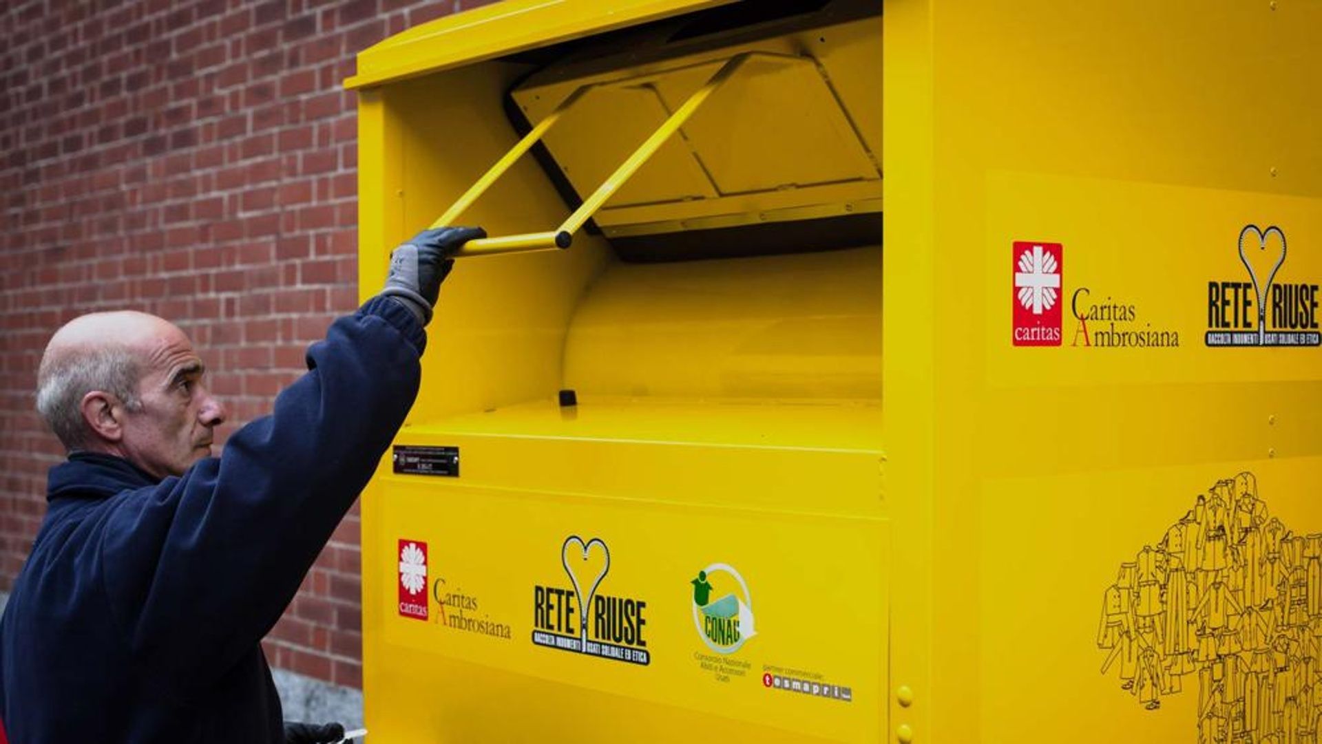 «Non sono tutti uguali» è lo slogan di quelli contraddistinti dalla scritta «Dona Valore», parte del circuito virtuoso della Rete di cooperative R.i.u.s.e che gestisce per conto di Caritas la raccolta di indumenti usati, il loro stoccaggio e la vendita all’ingrosso per finanziare progetti sociali ed etici. A Bergamo ci sono tre cooperative che fanno capo alla rete: quella di Padre Daniele Badiali, la Cooperativa Ruah e la Cooperativa Berakah, che in totale gestiscono oltre 500 cassonetti gialli.