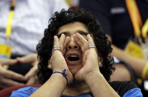 Olimpiadi/ Maradona poco olimpico: gestacci durante Argentina-Usa