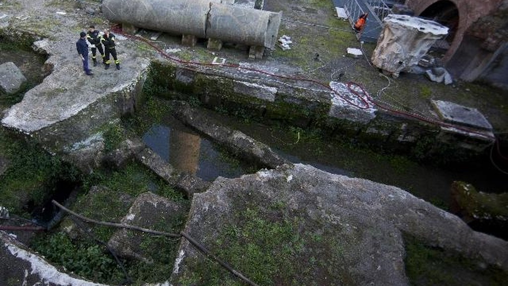 Grandi pozze acqua nella zona archeologica vicino ai Fori