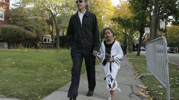Usa 2008/ Halloween: Obama con la figlia si irrita coi fotografi "Ok, ragazzi, basta così" mentre a Chicago la porta a spasso